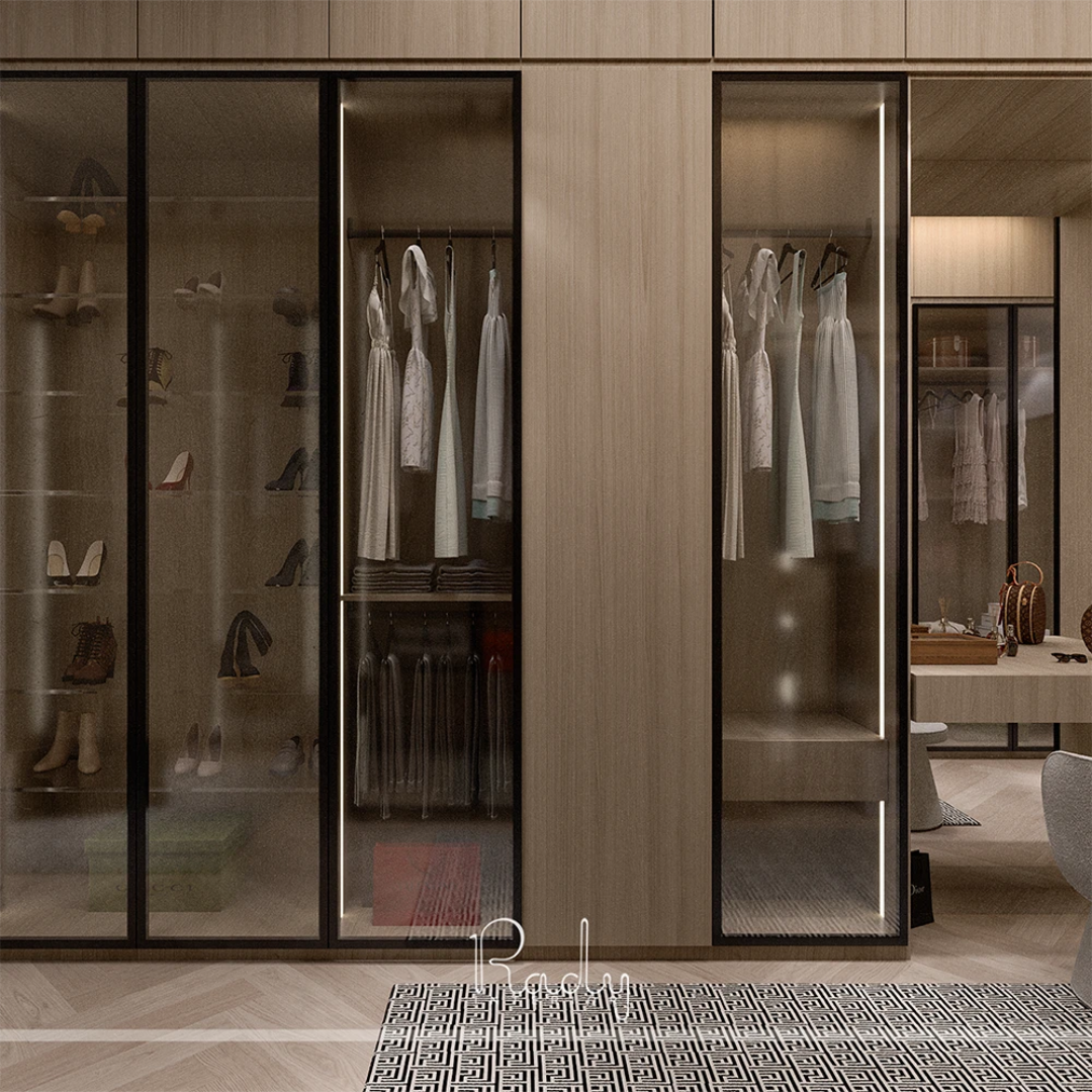 في RadyInterior، نصمم غرف تبديل ملابس تجمع بين الأناقة والتنظيم، مما يمنحك مساحة مرتبة وعصرية تلبي احتياجاتك اليومية.